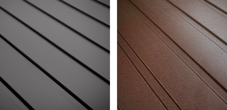 Poszycie ścian wykonane jest z blachy trapezowej T-8 (wysokość profilu: 8 mm). Dach pokryty jest blachą trapezową T-14 (wysokość profilu: 14 mm). Standardowa grubość blachy to 0,5 mm. Jako opcję dodatkową oferujemy pokrycie dachu blachodachówką. Przy produkcji wykorzystujemy blachy ocynkowane oraz powlekane.
