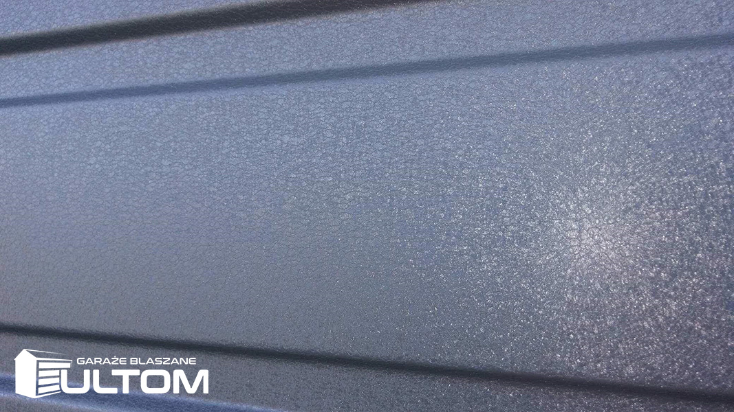 Garaż pokryty jest powlekaną blachą trapezową w kolorze grafitowym (RAL 7016) o matowej strukturze blachy, która charakteryzuje się zwiększoną odpornością na warunki atmosferyczne oraz promienie UV. Bogaty wybór kolorów z palety RAL umożliwia dostosowanie kolorystyki garażu do otoczenia oraz istniejących zabudowań.